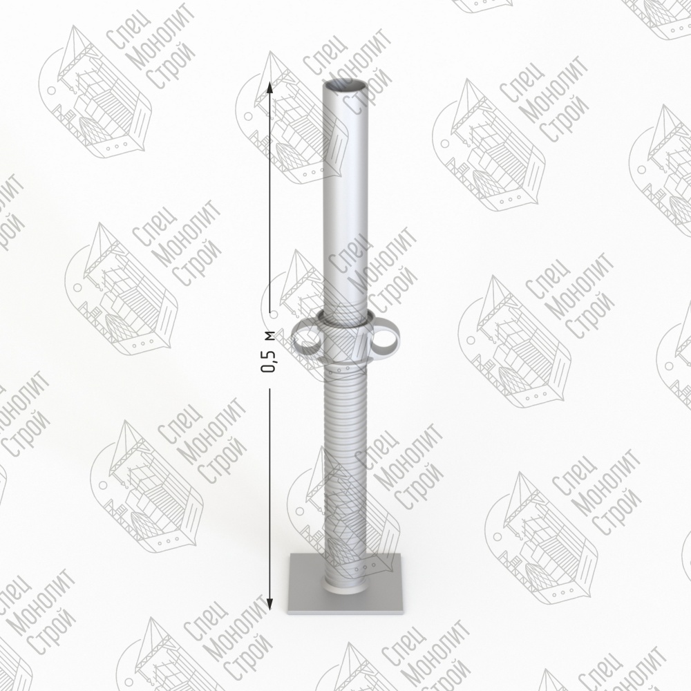 Вал нижний регулировочный применяется при использовании объемных стоек. Является опорным резьбовым элементом, воспринимающим на себя нагрузку от опалубки. Обеспечивает дополнительную, точную юстировку стола.