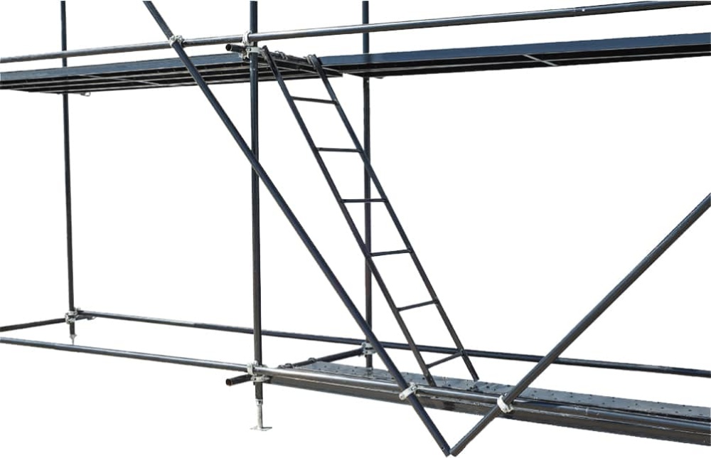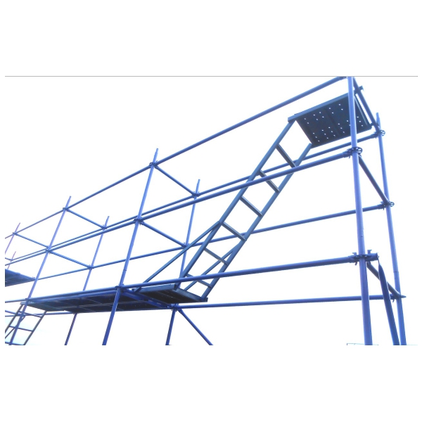 В рамных строительных лесах для подъема на верхние уровни используются рамы с лестницами, место установки которых нужно продумывать уже при сборке конструкции. Для всех остальных типов строительных лесов используются навесные лестницы, позволяющие произвести установку в любом месте даже после сборки конструкции. По необходимости мы можем изготовить лестницы трапы как с поручнями, так и без них. Данные навесные лестницы можно использовать и при монтаже рамных лесов для установки лестниц внутри собранное конструкции.