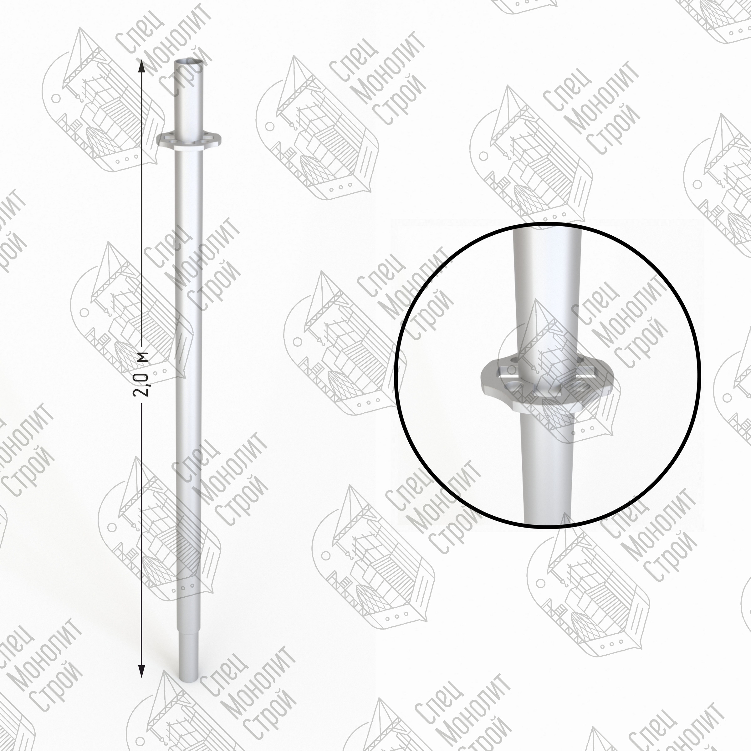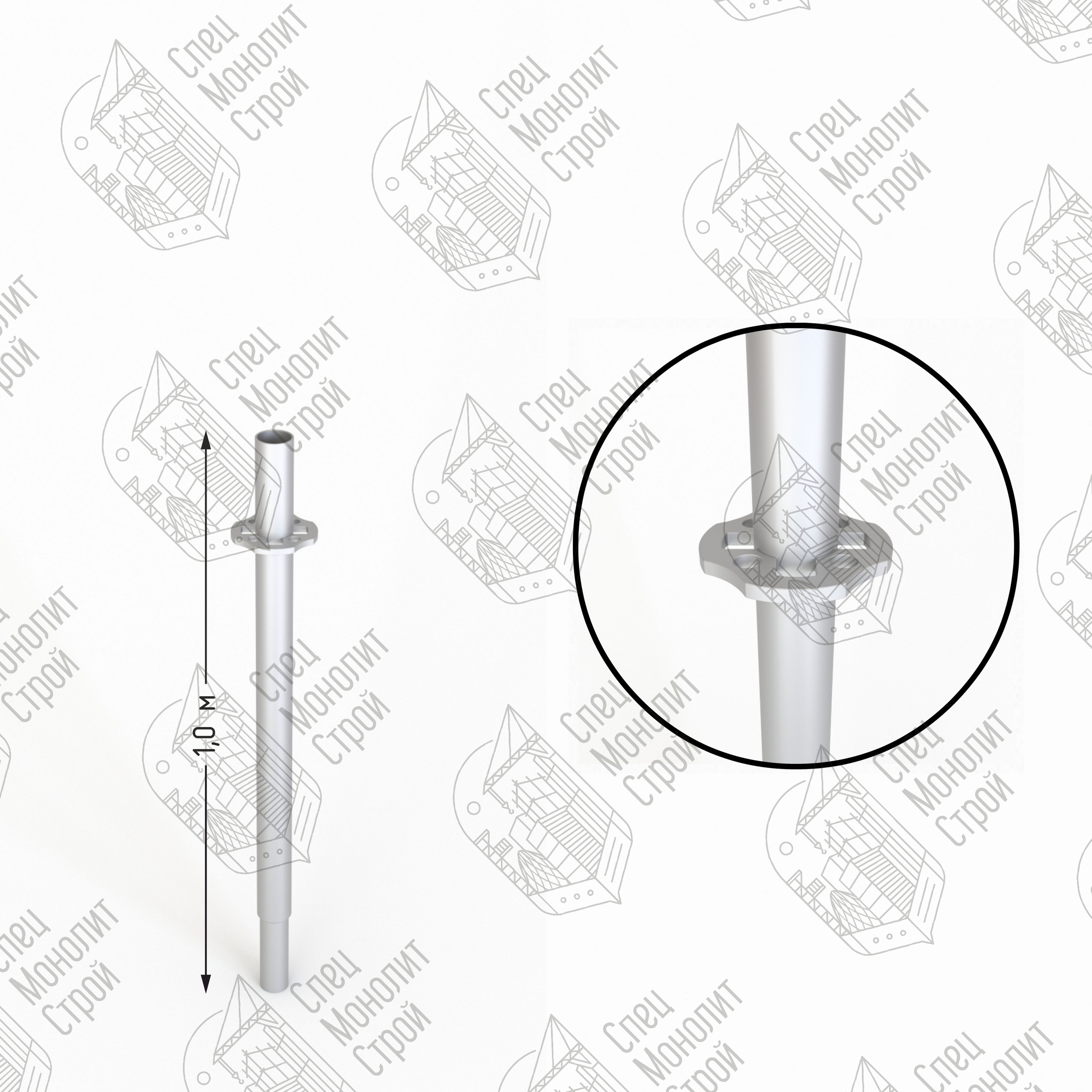 Доборная стойка применяется для наращивания высоты объемной опалубки перекрытий и представляет собой круглую стальную трубу диаметром 57 мм. с толщиной стенки 3 мм., на которую приварены фланцы под ригеля на клиновом или чашечном (каплок) соединении. Усиленные стойки выдерживают нагрузки на ось до 6000 кгс и позволяют возводить объемную опалубку для перекрытий на высотах до 40 м. Как и стартовые стойки, доборные изготавливаются из конструкционной стали методом холодного проката и доступны высотой от 1 м. до 4 м.