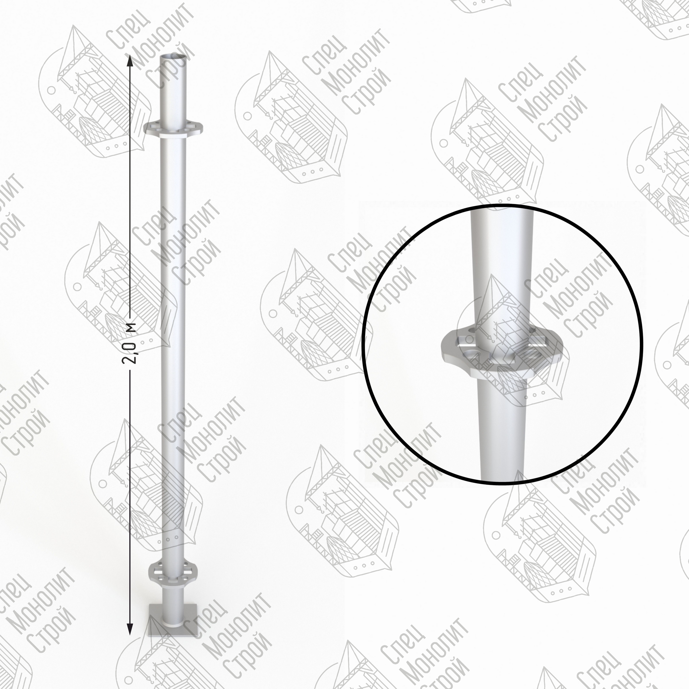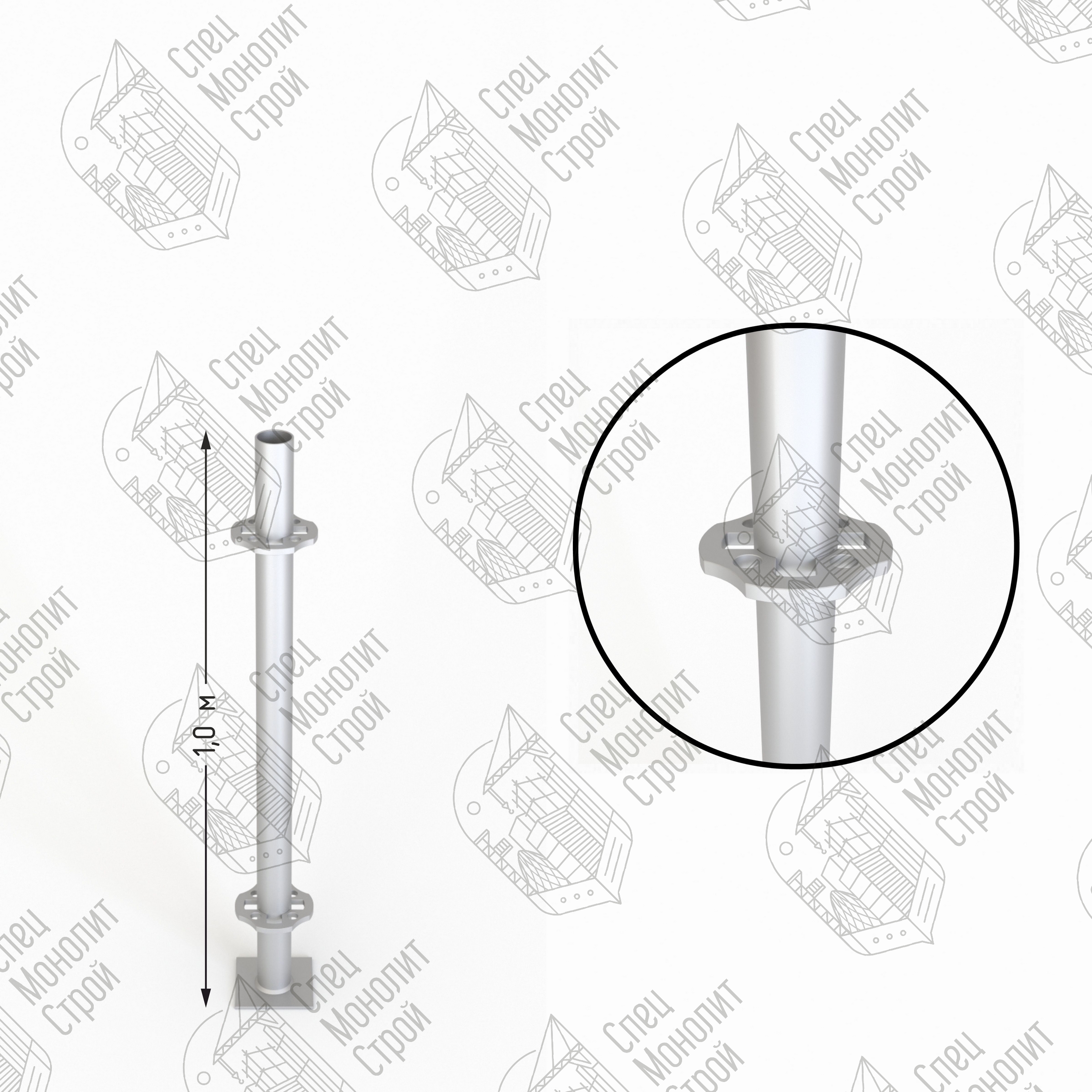 Стартовая стойка объемной опалубки представляет собой круглую стальную трубу диаметром 57 мм с толщиной стенки 2 мм., на которую приварены фланцы под ригеля на клиновом или чашечном (каплок) соединении. Усиленные стойки выдерживают нагрузки на ось до 6000 кгс и позволяют возводить объемную опалубку для перекрытий на высотах до 40 м. Стартовые стойки изготавливаются высотой от 1 м до 4,4 м с различным количеством фланцев для крепления ригелей. Они устанавливаются в юстировочные домкраты и башмаки на подготовленное ровное основание.