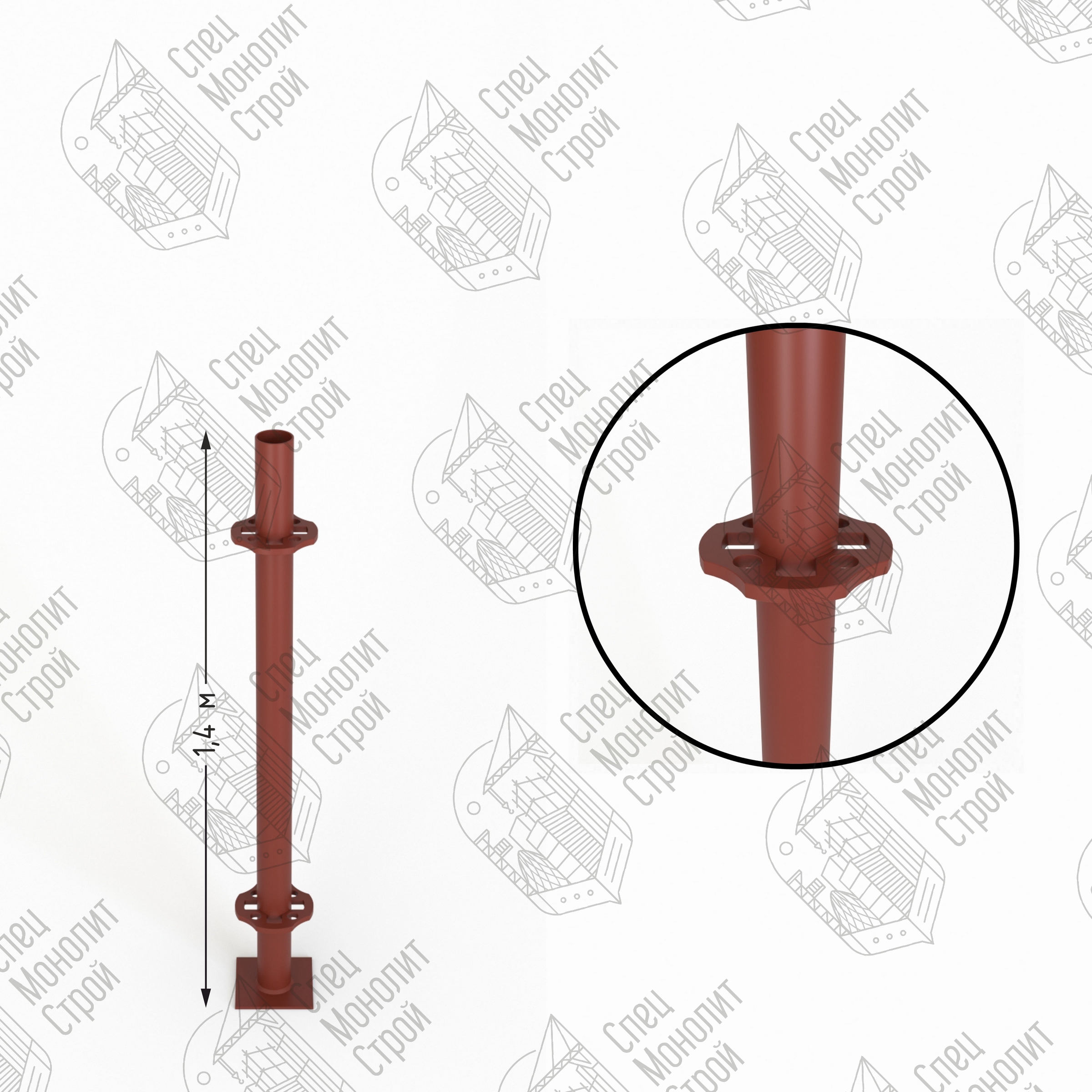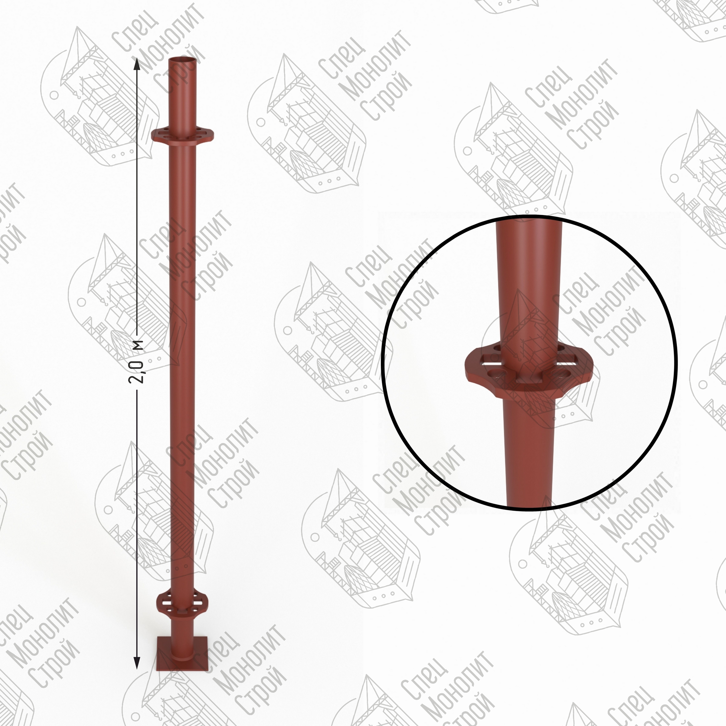 Стартовая стойка объемной опалубки представляет собой круглую стальную трубу диаметром 57 мм с толщиной стенки 3 мм., на которую приварены фланцы под ригеля на клиновом или чашечном (каплок) соединении. Усиленные стойки выдерживают нагрузки на ось до 6000 кгс и позволяют возводить объемную опалубку для перекрытий на высотах до 40 м. Стартовые стойки изготавливаются высотой от 1 м до 4,4 м с различным количеством фланцев для крепления ригелей. Они устанавливаются в юстировочные домкраты и башмаки на подготовленное ровное основание.