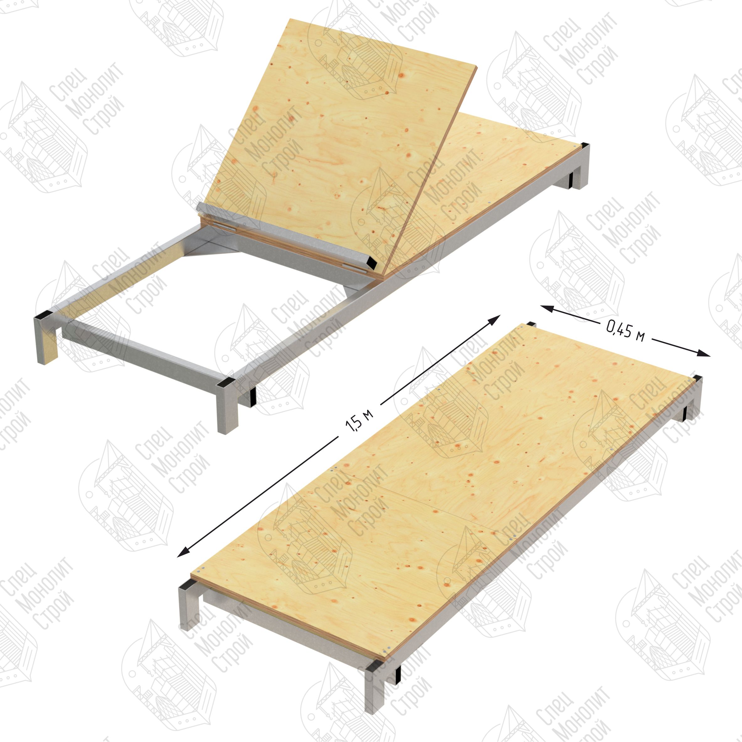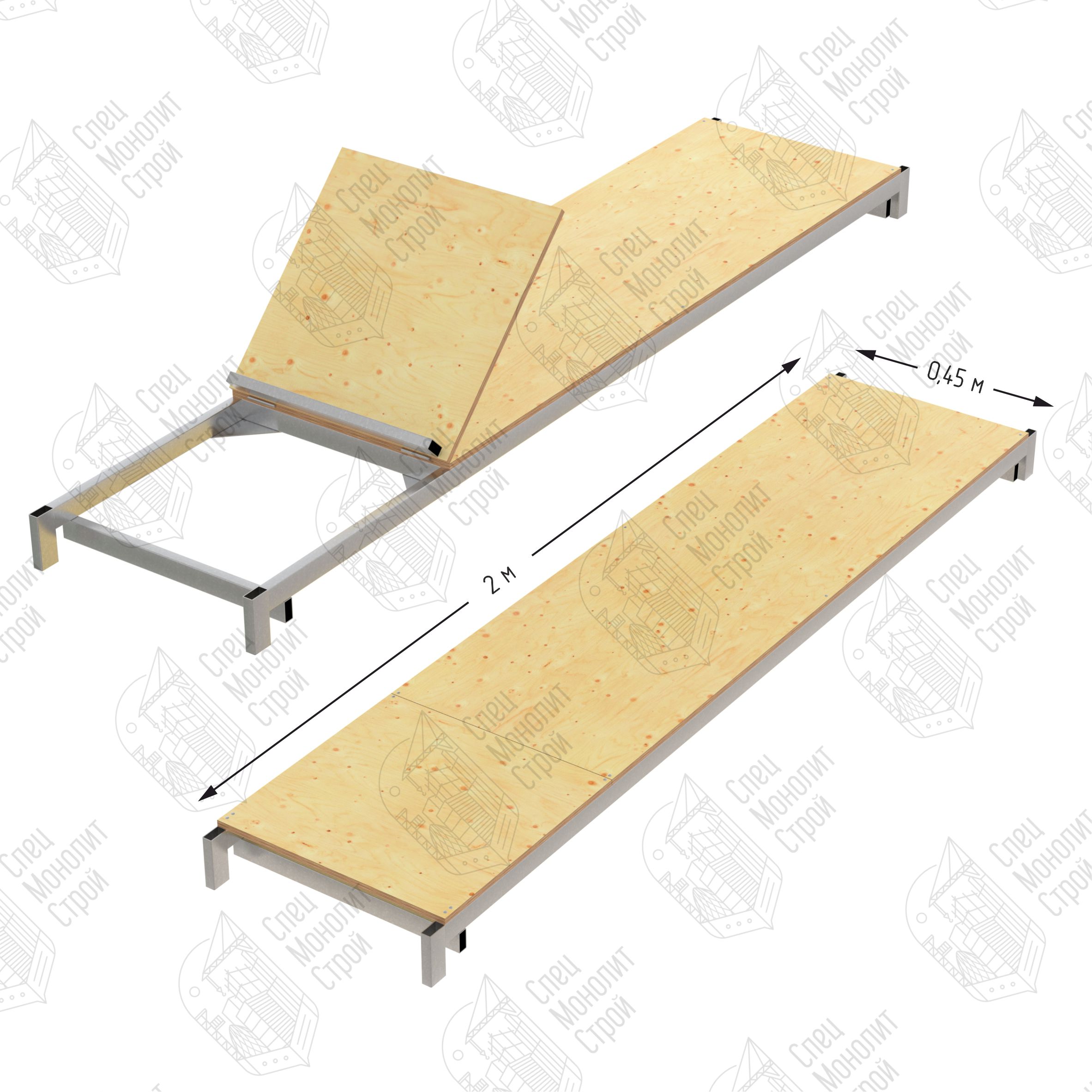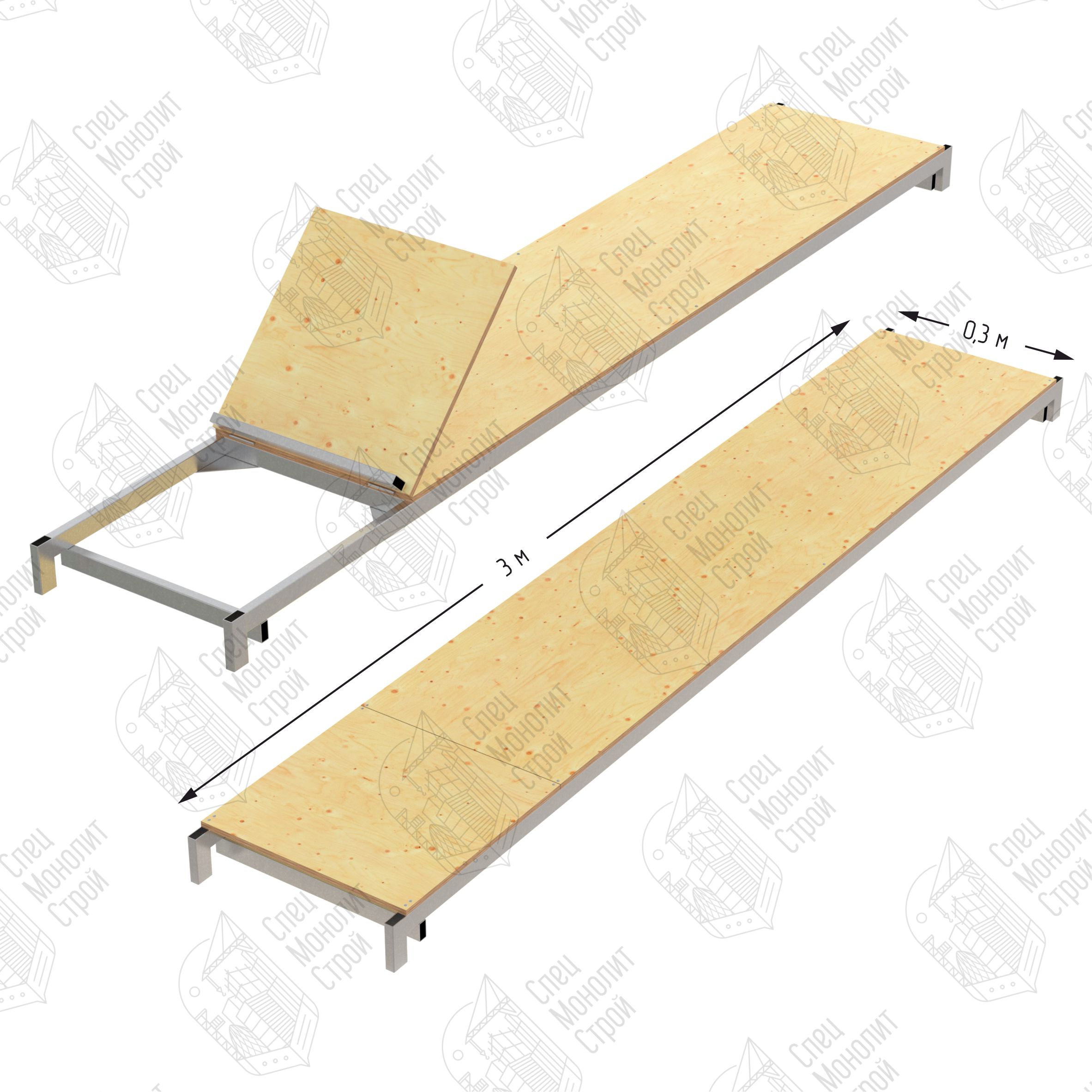 Настил комбинированный устанавливается на горизонтальные элементы клиновых строительных лесов. Его конструкция включает сварной прямоугольный каркас из отрезов профильной трубы, с приваренными с двух сторон четырьмя крепежными элементами. Поверхность комбинированного настила выполнена из фанеры. Преимуществом данного типа настилов является то, что поверхность из фанеры, пришедшую в негодность, можно легко заменить, сэкономив тем самым на покупке нового изделия.
