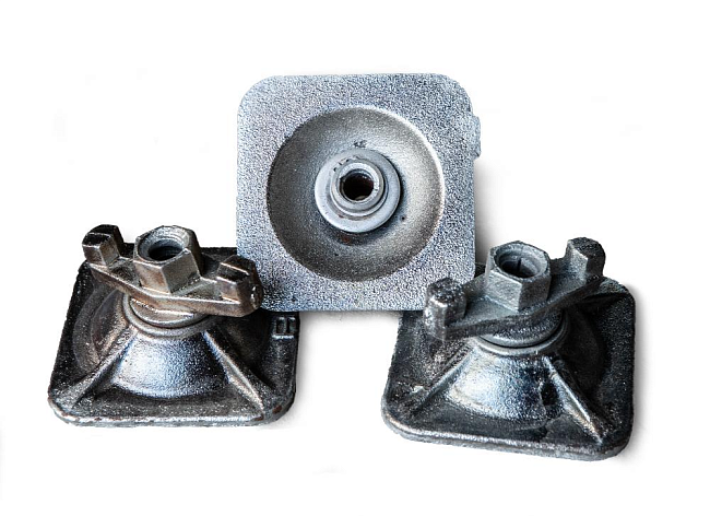 Гайка шарнирная (комбиплата) используется при создании опалубочных систем нестандартной формы. Наиболее востребована при возведении купольных, сферических сооружений и сводов, арок. Гайка суперплита используется со стяжными винтами стандартного диаметра. Имеет опорную площадку размером 120х120 мм. Не требует дополнительной установки шайб-прокладок и позволяет крепить стяжные винты под углом до 15°. Конструкция комбиплаты равномерно распределяет нагрузку между стяжными элементами и щитами опалубки. Препятствует их повреждению. Компенсирует смещение внутреннего и внешнего радиусов.