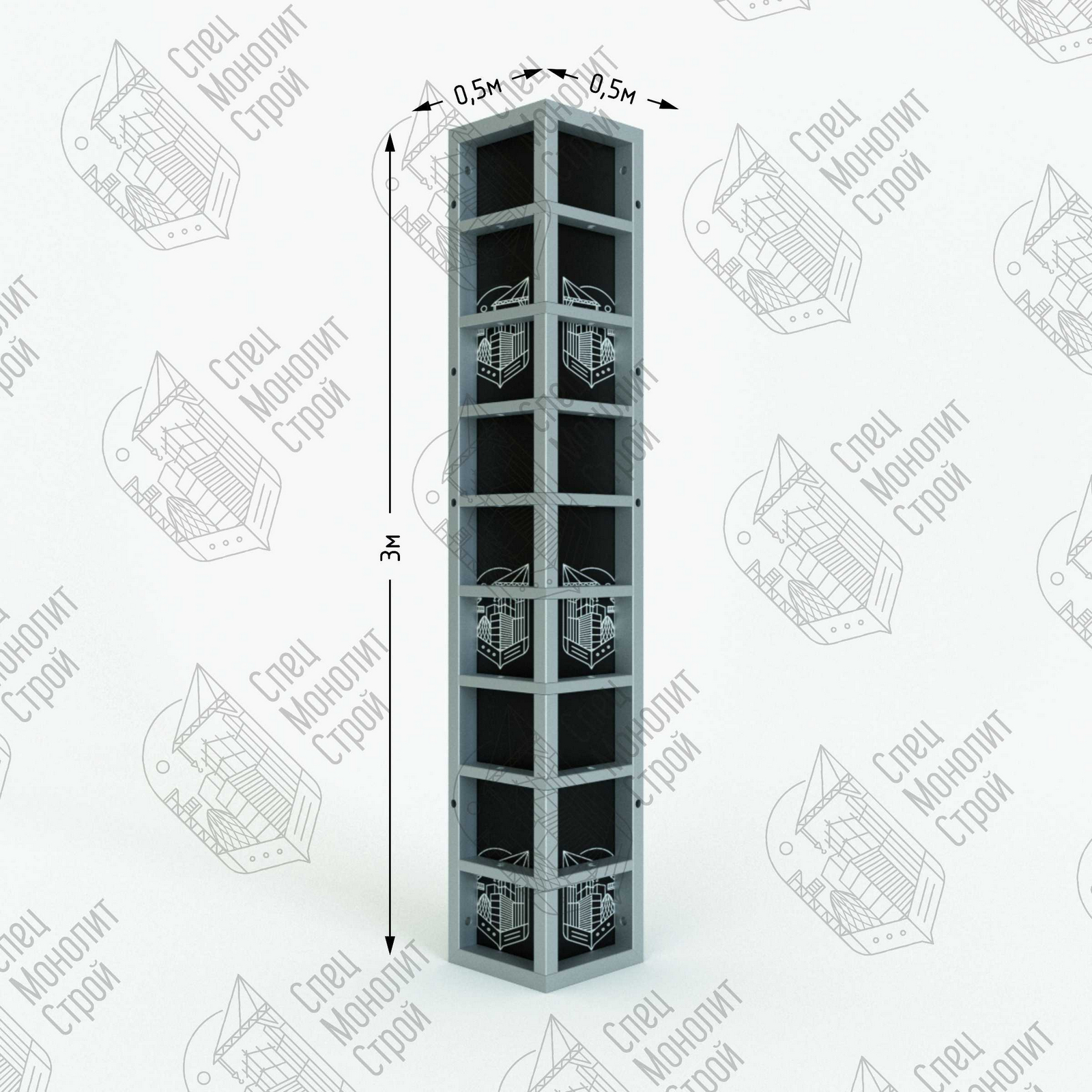 Наружные угловые щиты применяются в системе опалубки для формирования наружного угла стены (в паре с внутренним угловым щитом) или наружного угла лифтовой шахты (в паре с внутренним шарнирным щитом или угловым распалубочным щитом). Обеспечивают более жесткое и точное угловое соединение по сравнению с угловым соединением линейных щитов при помощи углового элемента.