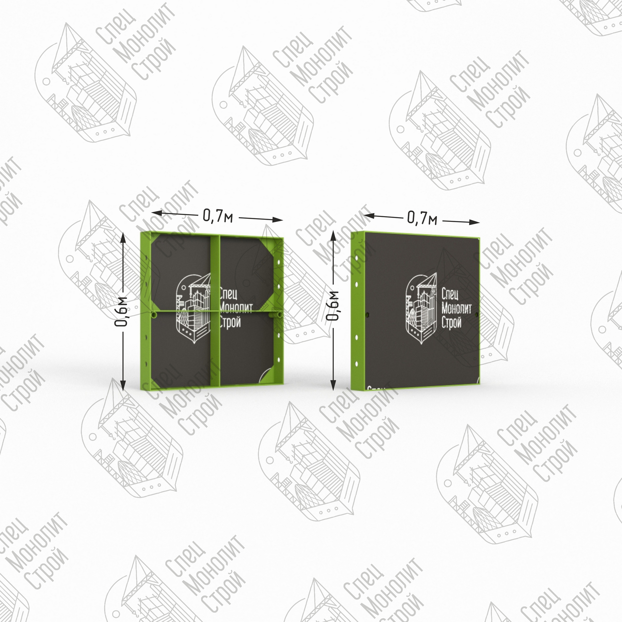 Линейный щит мелкощитовой опалубки представляет собой сварной каркас из стального профиля шириной 63,5 мм с толщиной стенки 8 мм. Стальной профиль оснащен ребрами жесткости и технологическими отверстиями для клинового соединения и крепления комплектующих. Размерный ряд щитов от 0,2 до 1,2 метров с шагом 0,1 м. , высота — 0,6 метра. Мелкощитовой щит полностью совместим с любыми видами крупнощитовой опалубки, но в отличие от нее монтируется вручную без применения специальной подъемной техники. Щит обладает оборачиваемостью до 300 циклов.