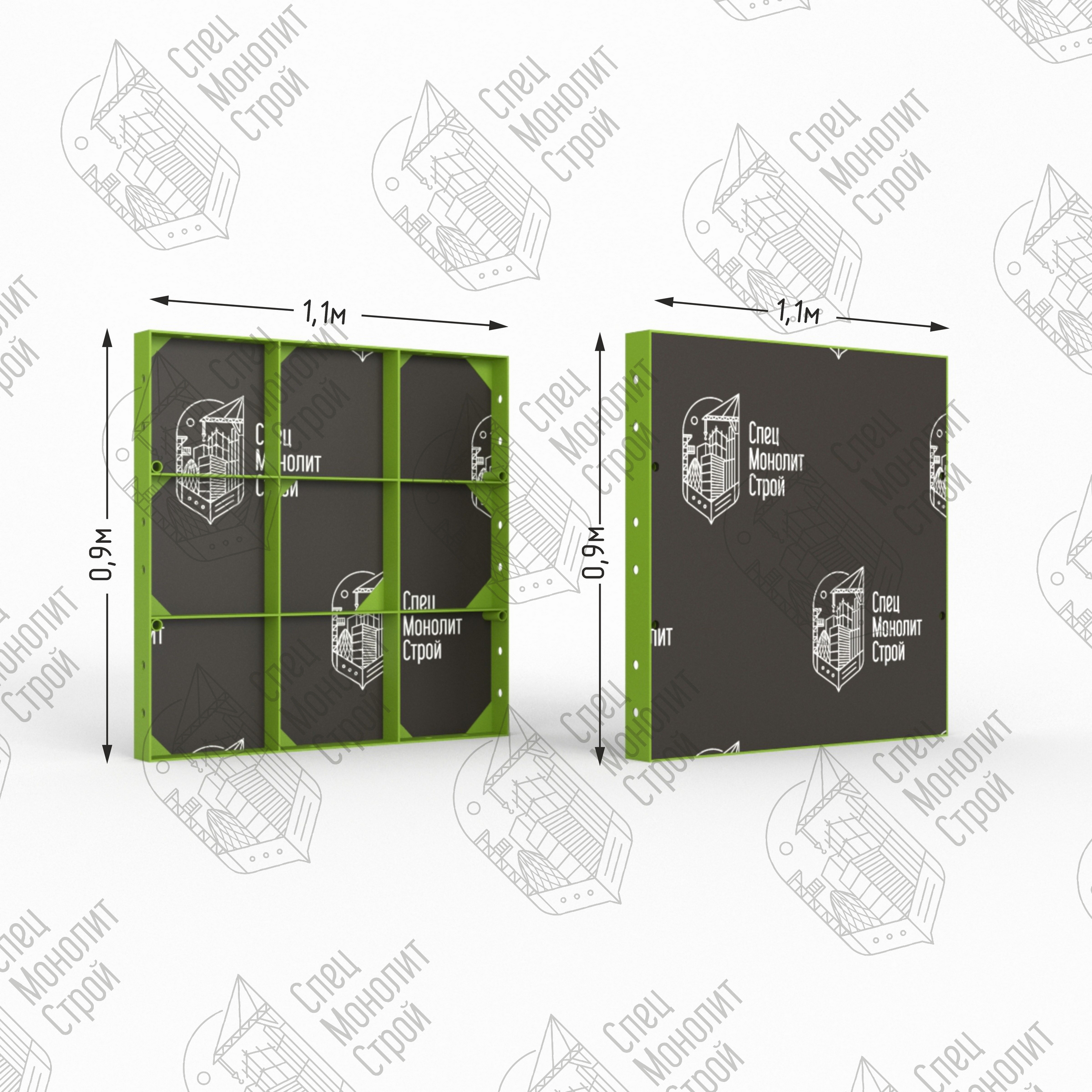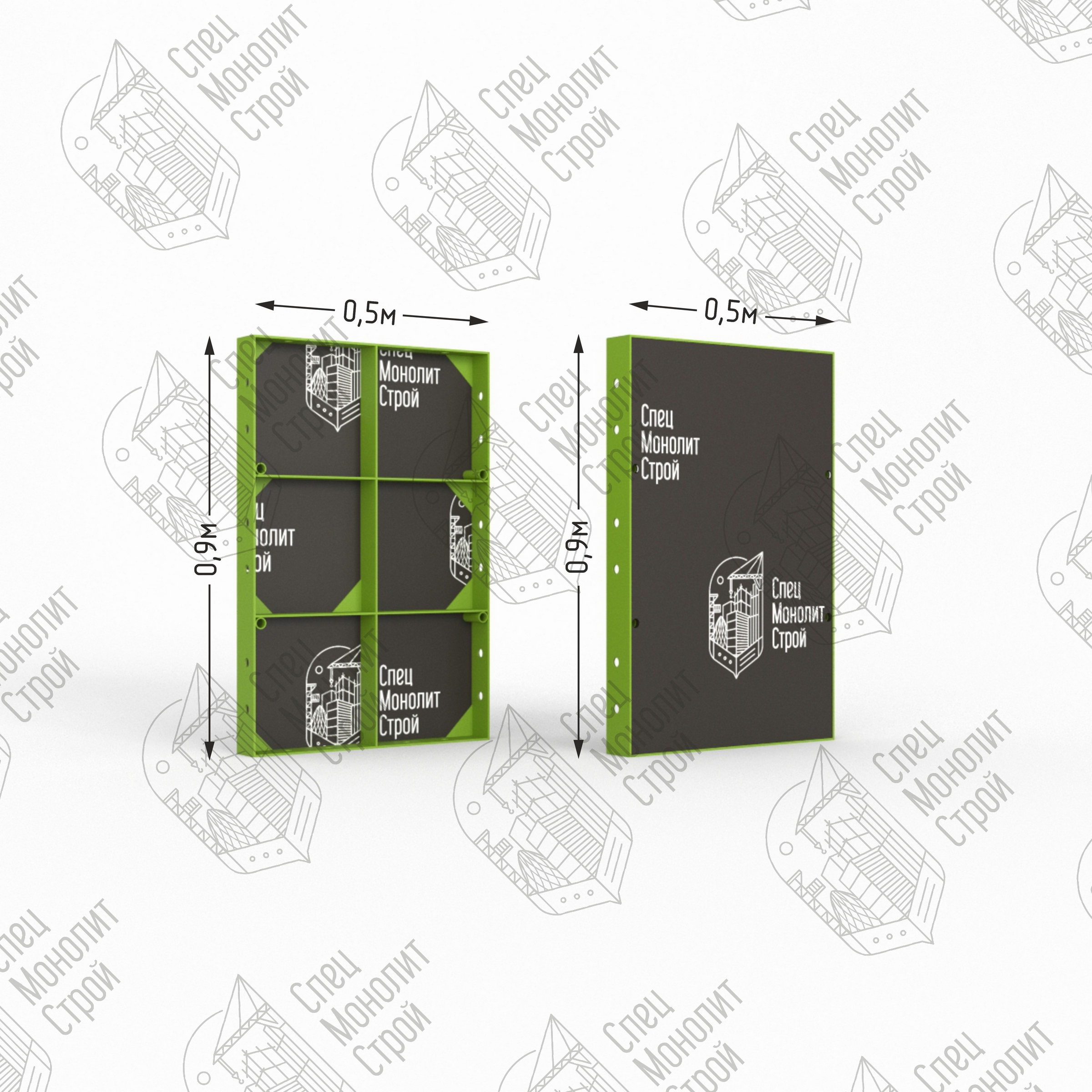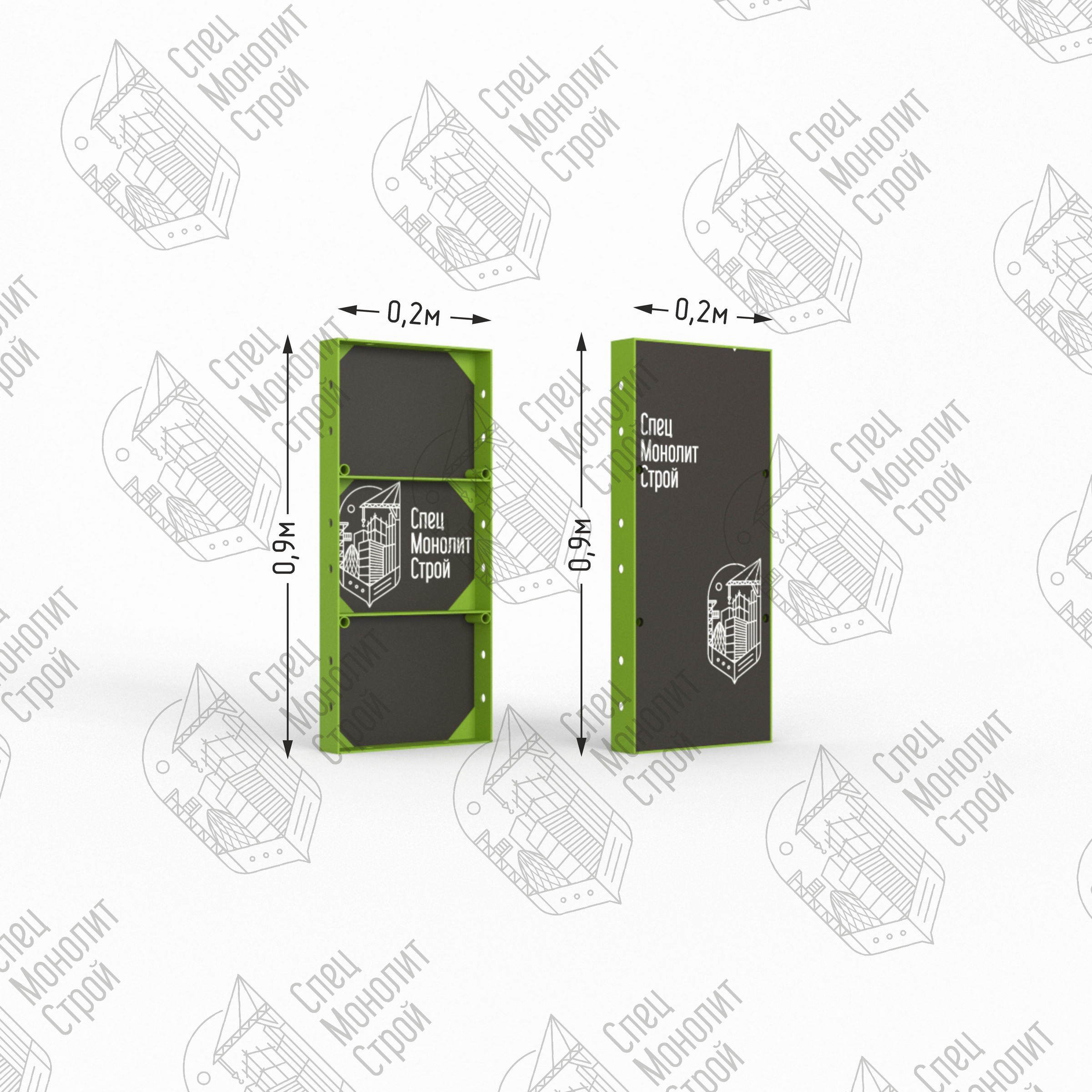 Линейный щит мелкощитовой опалубки представляет собой сварной каркас из стального профиля шириной 63,5 мм с толщиной стенки 8 мм. Стальной профиль оснащен ребрами жесткости и технологическими отверстиями для клинового соединения и крепления комплектующих. Размерный ряд щитов от 0,2 до 1,2 метров с шагом 0,1 м. , высота — 0,9 метра. Мелкощитовой щит полностью совместим с любыми видами крупнощитовой опалубки, но в отличие от нее монтируется вручную без применения специальной подъемной техники. Щит обладает оборачиваемостью до 300 циклов.