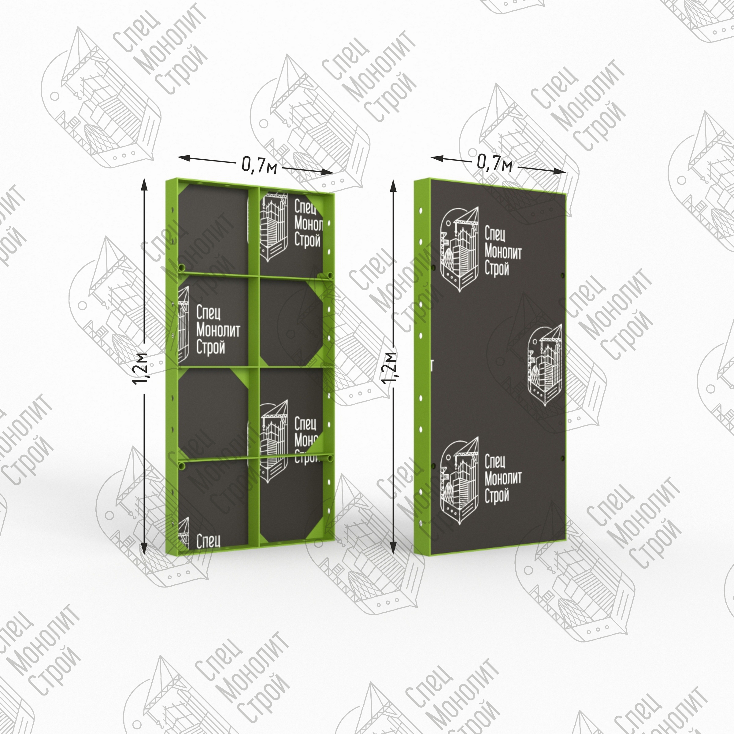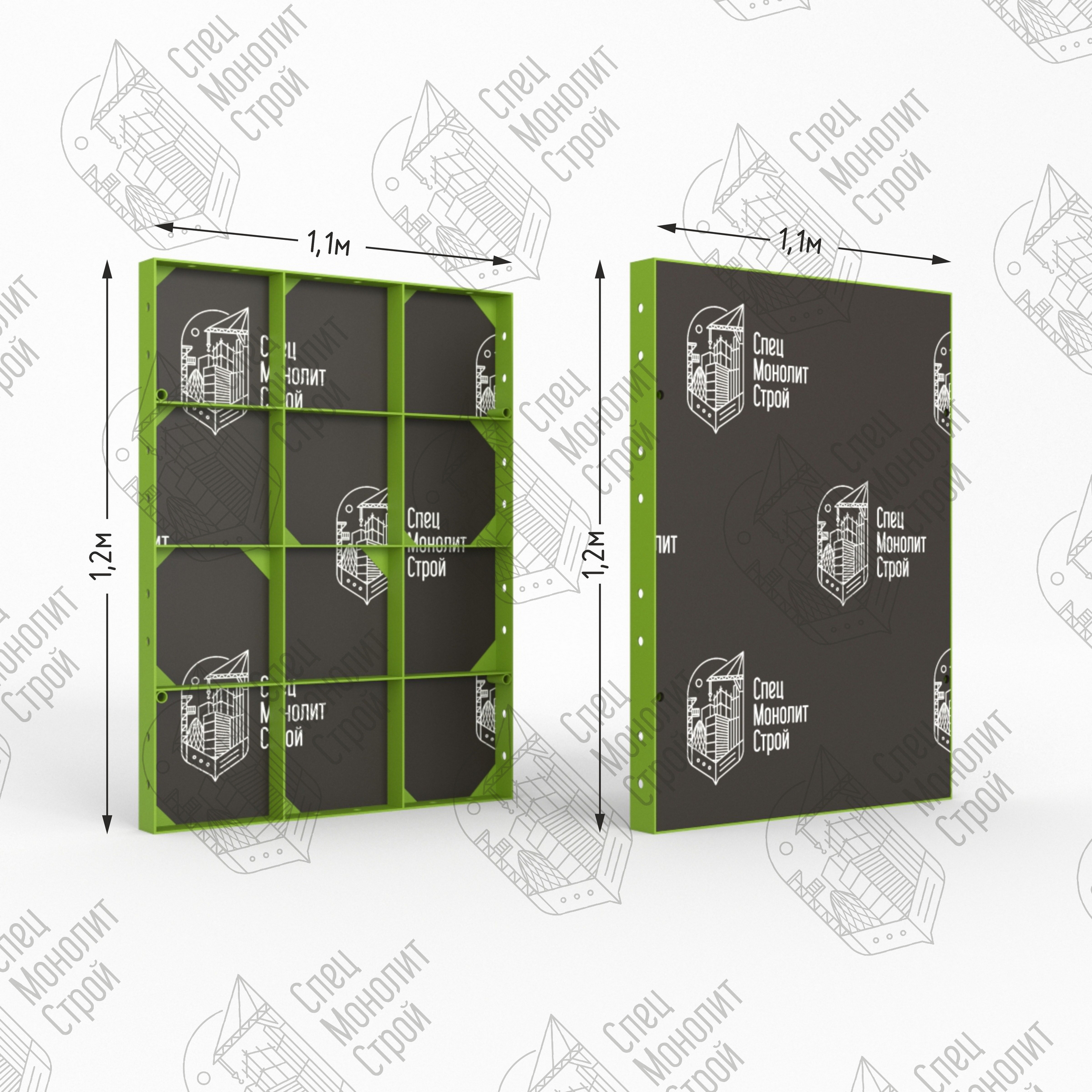 Линейный щит мелкощитовой опалубки представляет собой сварной каркас из стального профиля шириной 63,5 мм с толщиной стенки 8 мм. Стальной профиль оснащен ребрами жесткости и технологическими отверстиями для клинового соединения и крепления комплектующих. Размерный ряд щитов от 0,2 до 1,2 метров с шагом 0,1 м. , высота — 1,2 метра. Мелкощитовой щит полностью совместим с любыми видами крупнощитовой опалубки, но в отличие от нее монтируется вручную без применения специальной подъемной техники. Щит обладает оборачиваемостью до 300 циклов.