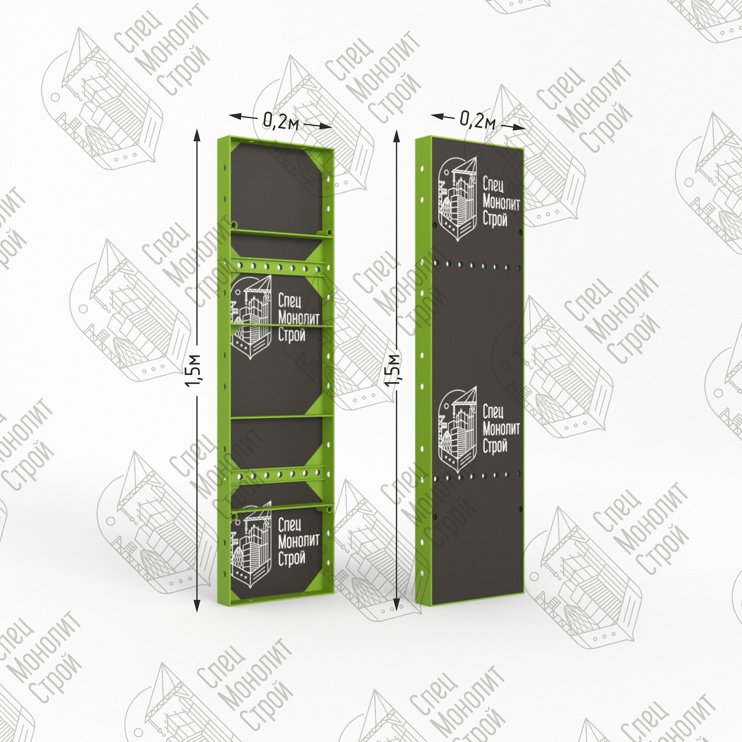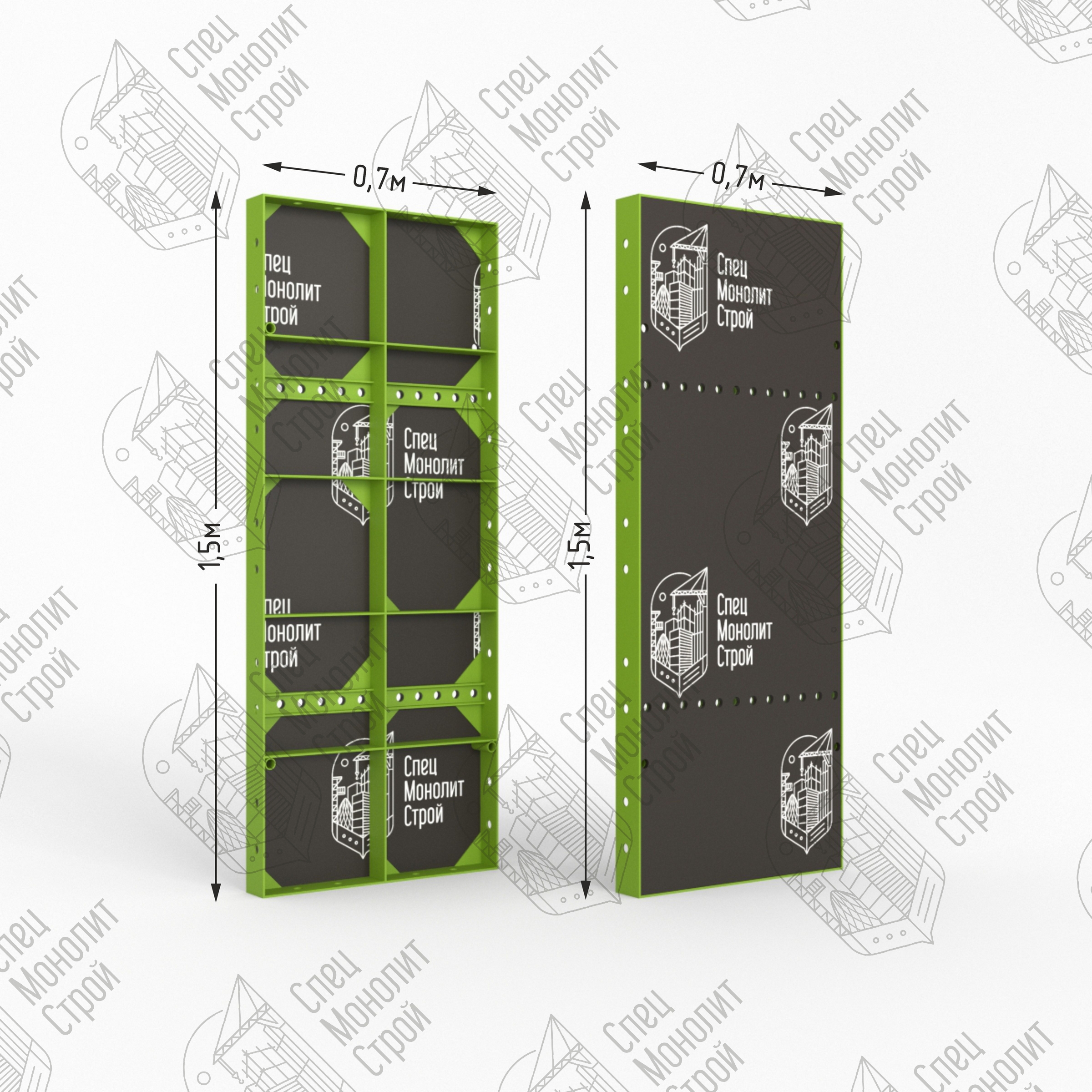 Главным отличием универсальных щитов от линейных заключаются в наличии на фронтальной части универсальной опалубки сквозных отверстий. Прорези делаются на расстоянии 50 миллиметров друг от друга. Универсальные щиты мелкощитовой опалубки производится из стали. Материал устойчив к деформации, выдерживает большие нагрузки. Размерный ряд щитов от 0,2 до 1,2 метров с шагом 0,1 м. , высота — 1,5 метра. Мелкощитовой щит полностью совместим с любыми видами крупнощитовой опалубки, но в отличие от нее монтируется вручную без применения специальной подъемной техники. Щит обладает оборачиваемостью до 300 циклов.