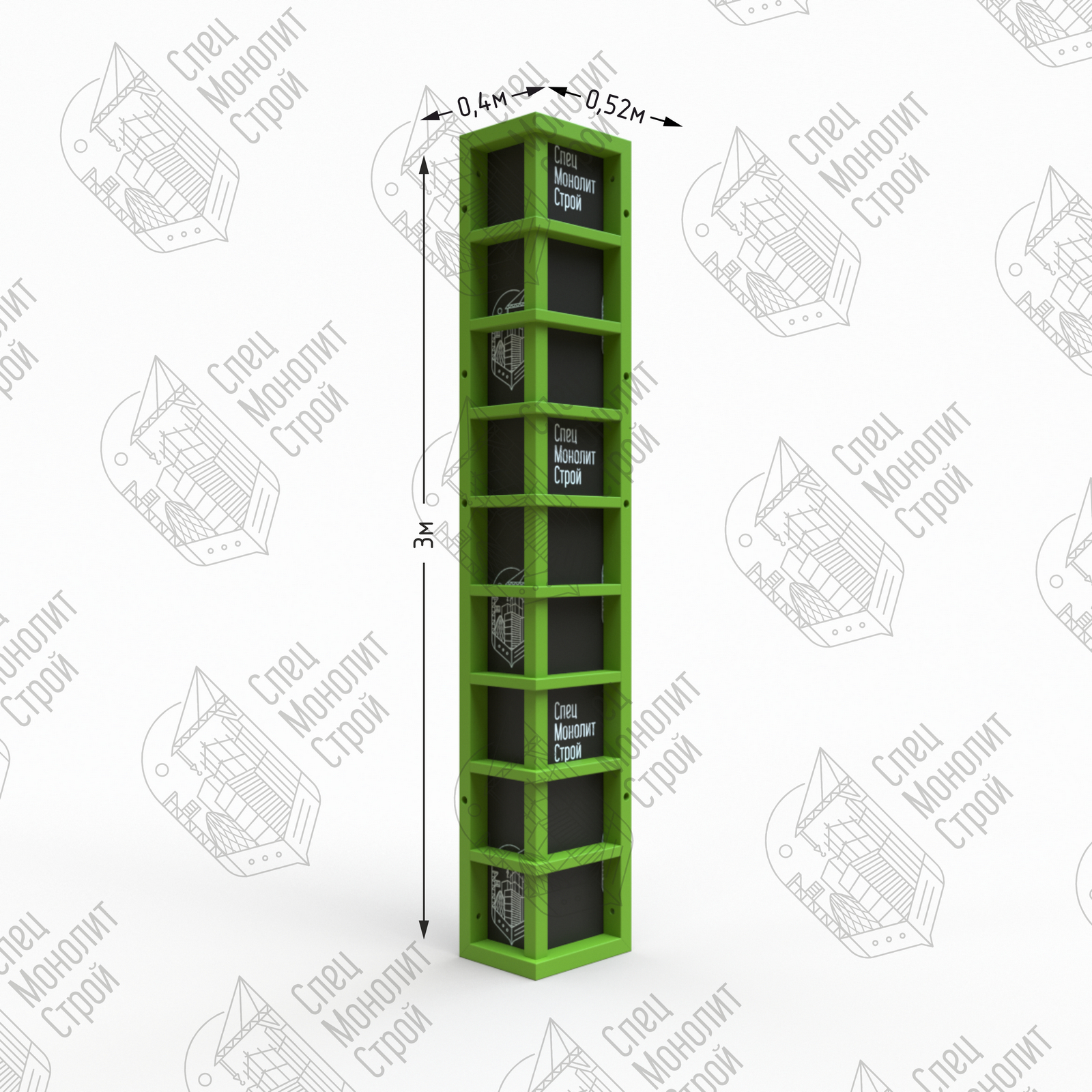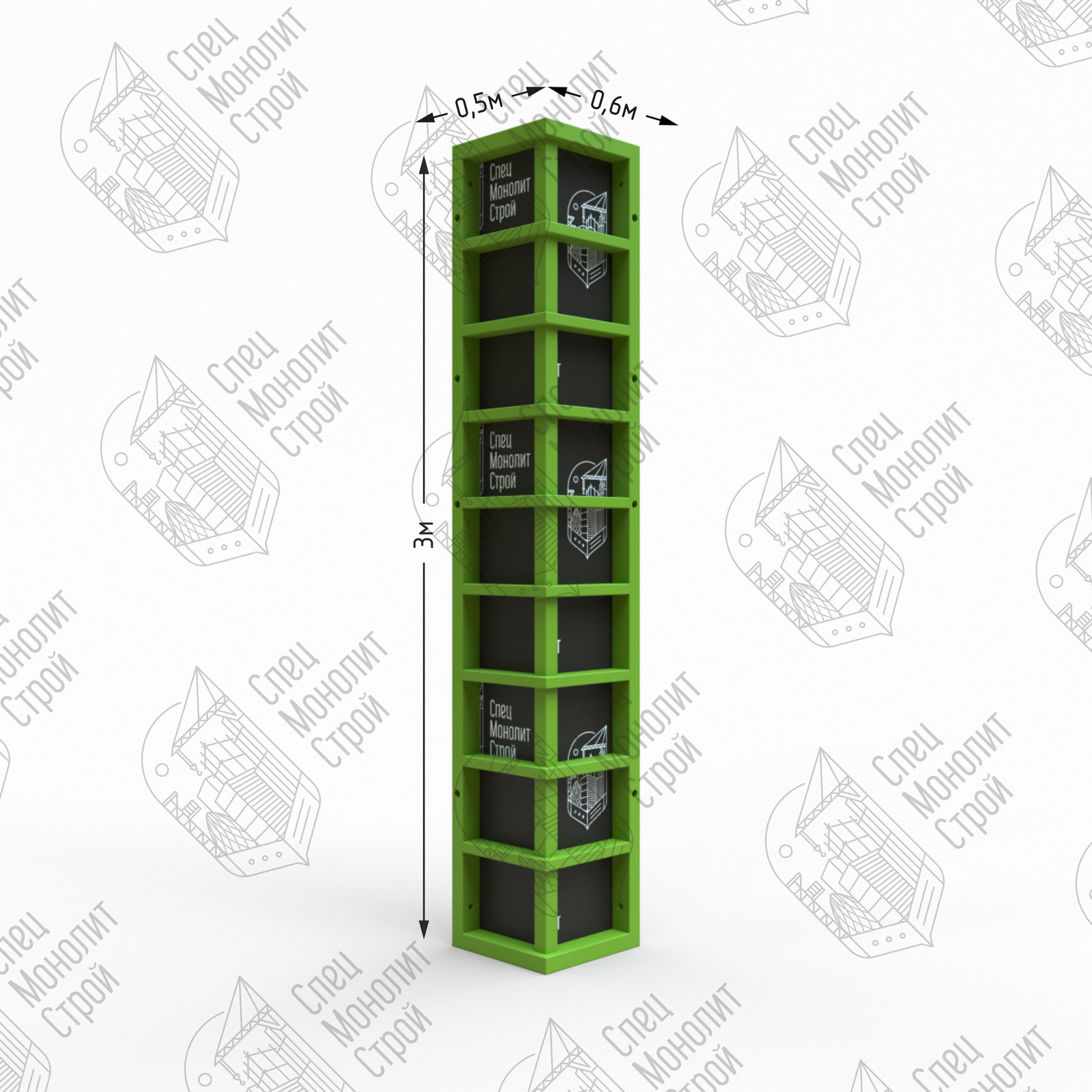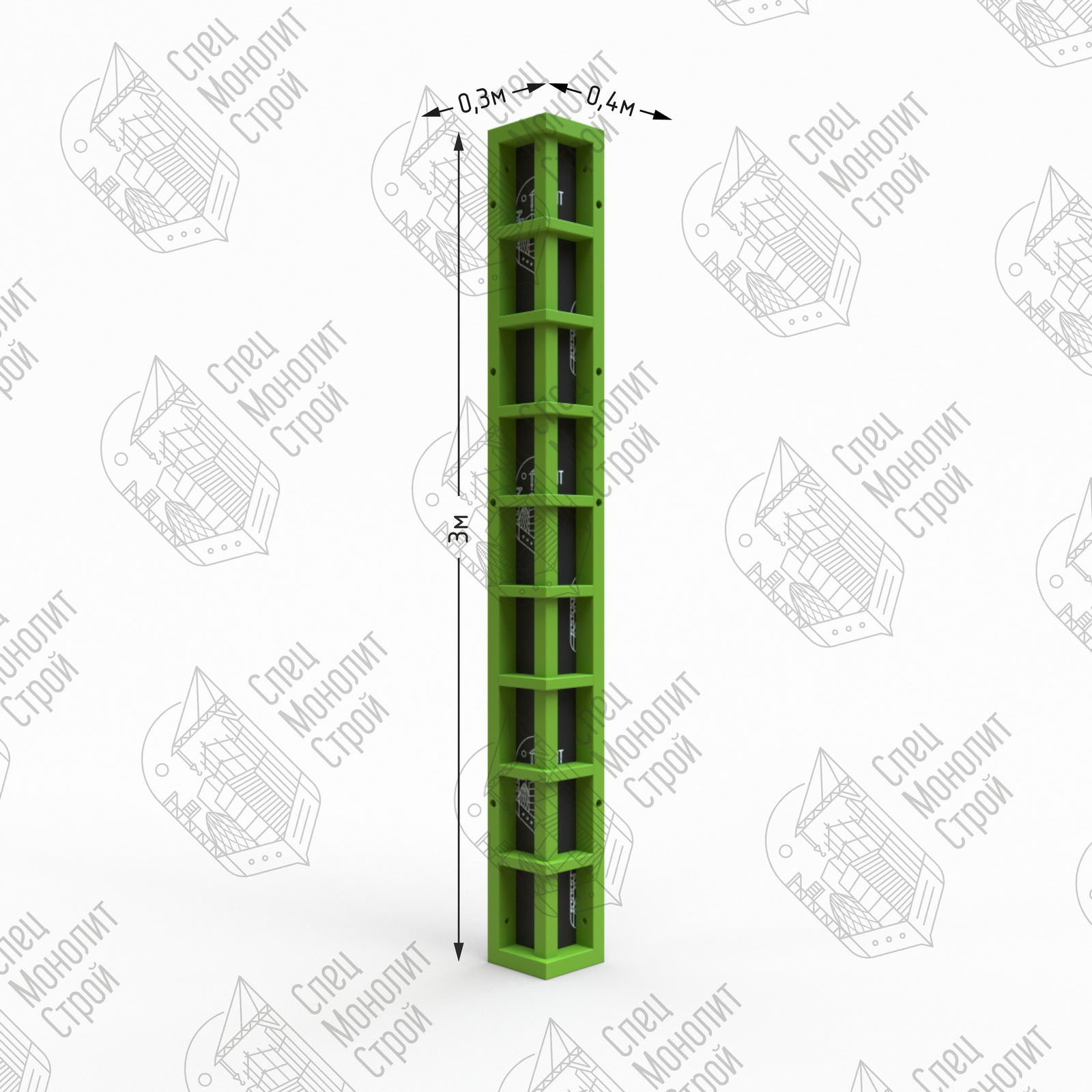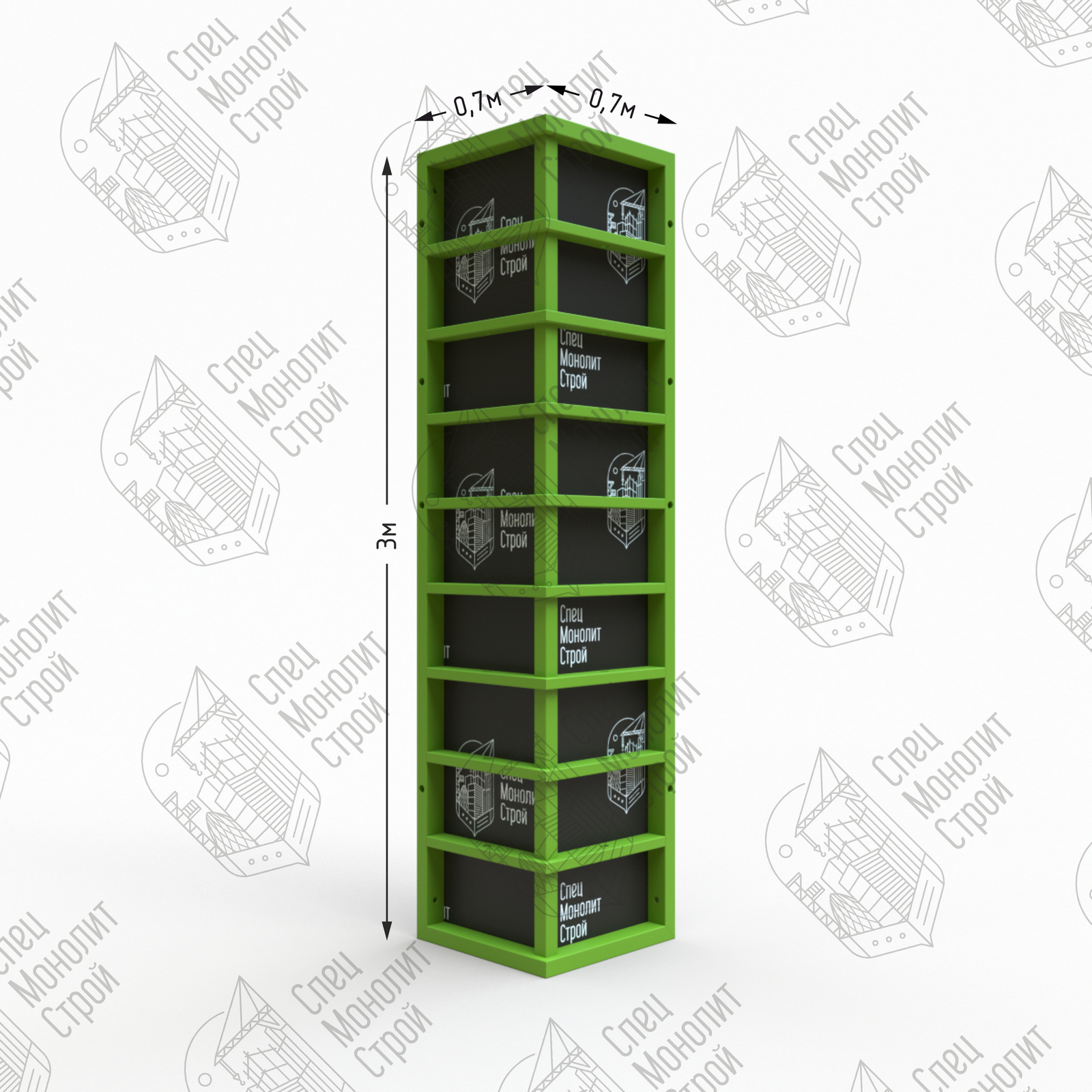 Наружные угловые щиты применяются в системе опалубки для формирования наружного угла стены (в паре с внутренним угловым щитом) или наружного угла лифтовой шахты (в паре с внутренним шарнирным щитом или угловым распалубочным щитом). Обеспечивают более жесткое и точное угловое соединение по сравнению с угловым соединением линейных щитов при помощи углового элемента.