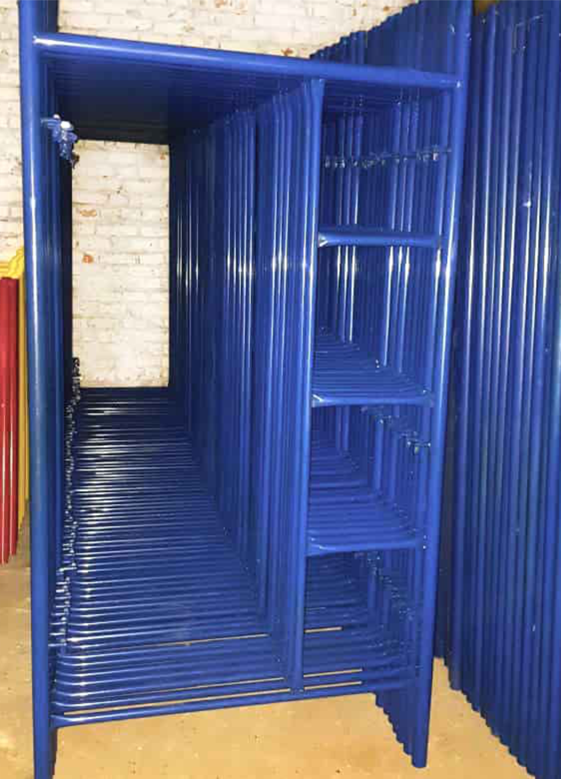 У рамных лесов ЛРСП-30 не предусмотрено отдельных вертикальных стоек, вместо них используются полностью сварные рамы.