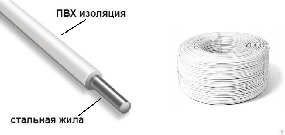 Конструкция токопроводящих жил состоит из одной проволочной мягкой стальной проволоки номинальным диаметром 1,2 мм, с изоляцией из полиэтилена высокого давления, на напряжение до 380 Вольт переменного тока частотой 50 Гц или постоянного тока до 1000 Вольт.